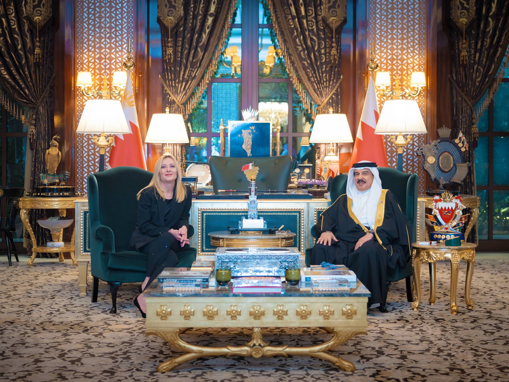 الملك حمد بن عيسى آل خليفة يستقبل رئيسة الوزراء الإيطالية جورجيا ميلوني في المنامة (بنا)