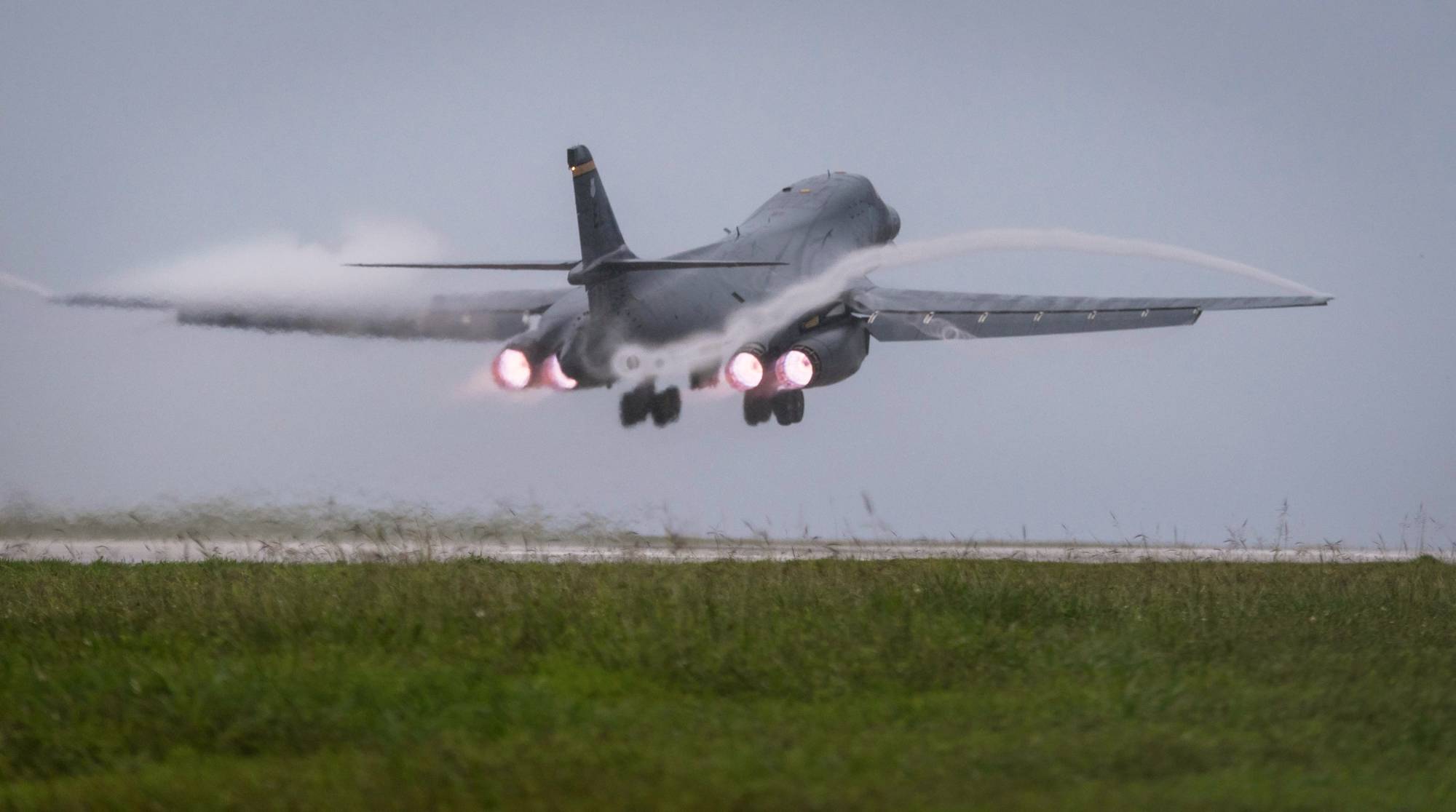 أرشيفية لقاذفة من طراز «بي 1 لانسير» لدى إقلاعها من قاعدة أميركية في غوام (أ.ب)