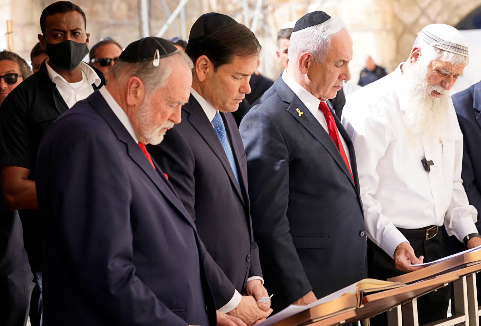 وعقب لقائهما، توجه روبيو ورئيس الوزراء الإسرائيلي بنيامين نتنياهو إلى «حائط البراق» (المبكى) في القدس الشرقية، حيث اعتمر وزير الخارجية الأميركي القلنسوة اليهودية.