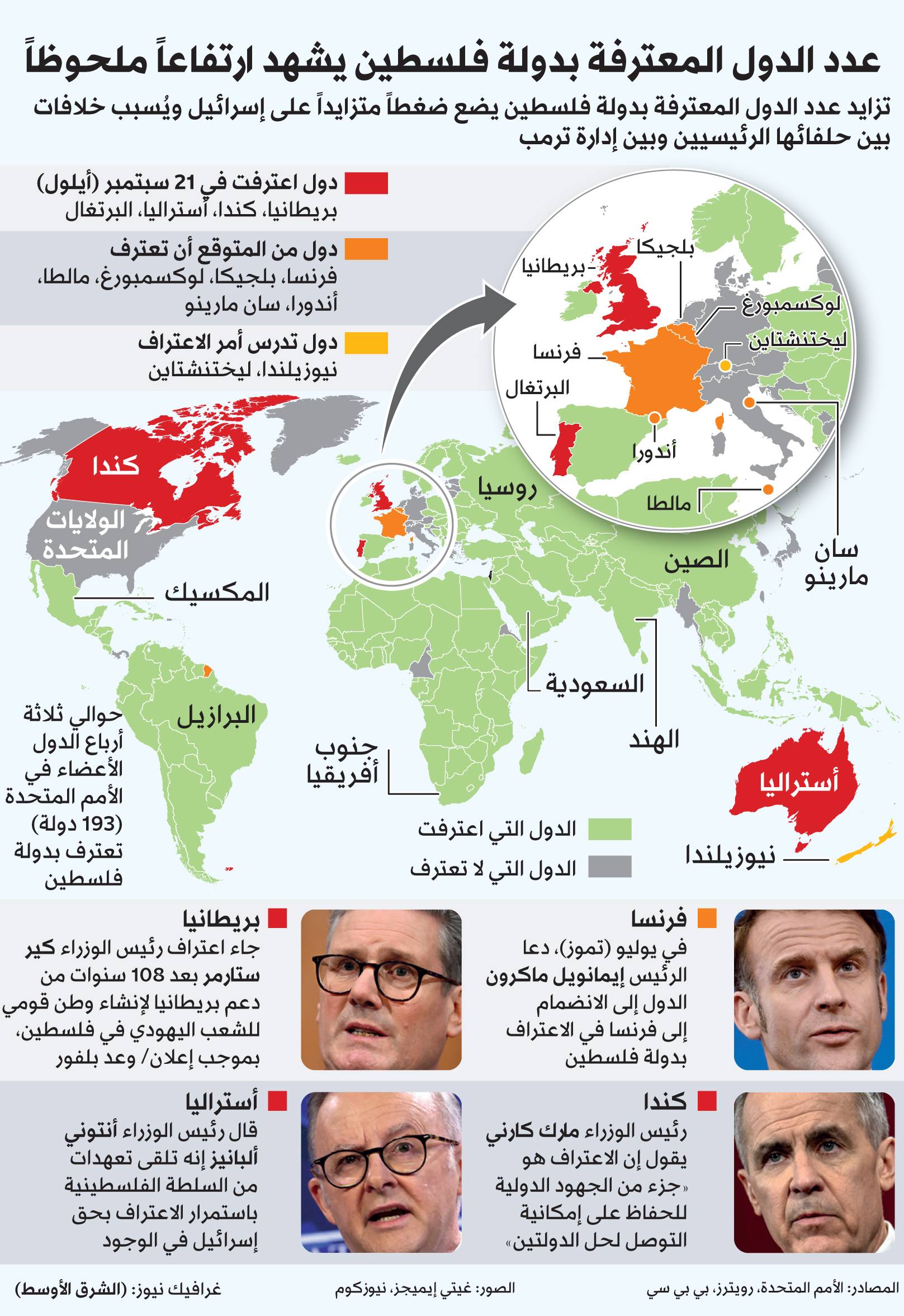 وأكدت مصادر مقربة من مراكز القرار لـ«الشرق الأوسط»، أن خطاب العاهل الأردني الملك عبد الله الثاني أمام الجمعية العامة للأمم المتحدة، الذي يتزامن مع مرور 80 عاماً على تأسيس الأمم المتحدة، سيذكّر بـ«القيم والمبادئ التي قامت عليها» المنظمة الدولية ويضعها أمام مسؤولياتها التاريخية، ويشدد على ضرورة وضع حد لـ«تمادي الحكومة الإسرائيلية في انتهاكاتها التي يرفضها العالم». وهذا في وقت يُدرك الأردن، حسب المصادر ذاتها، أن إعلان الاعتراف المتزايد بالدولة الفلسطينية ستقابله إسرائيل بـ«مصادرة المزيد من أراضي الضفة الغربية وتوسع بسياسات الضم، وارتكاب المزيد من الانتهاكات بحق المدنيين»، وهو أمر يجب أن «يجابه وأن تكون خطوة الاعتراف ممهدة لتحرك عالمي حازم يردع التصرفات الإسرائيلية»، حسب المصادر نفسها.