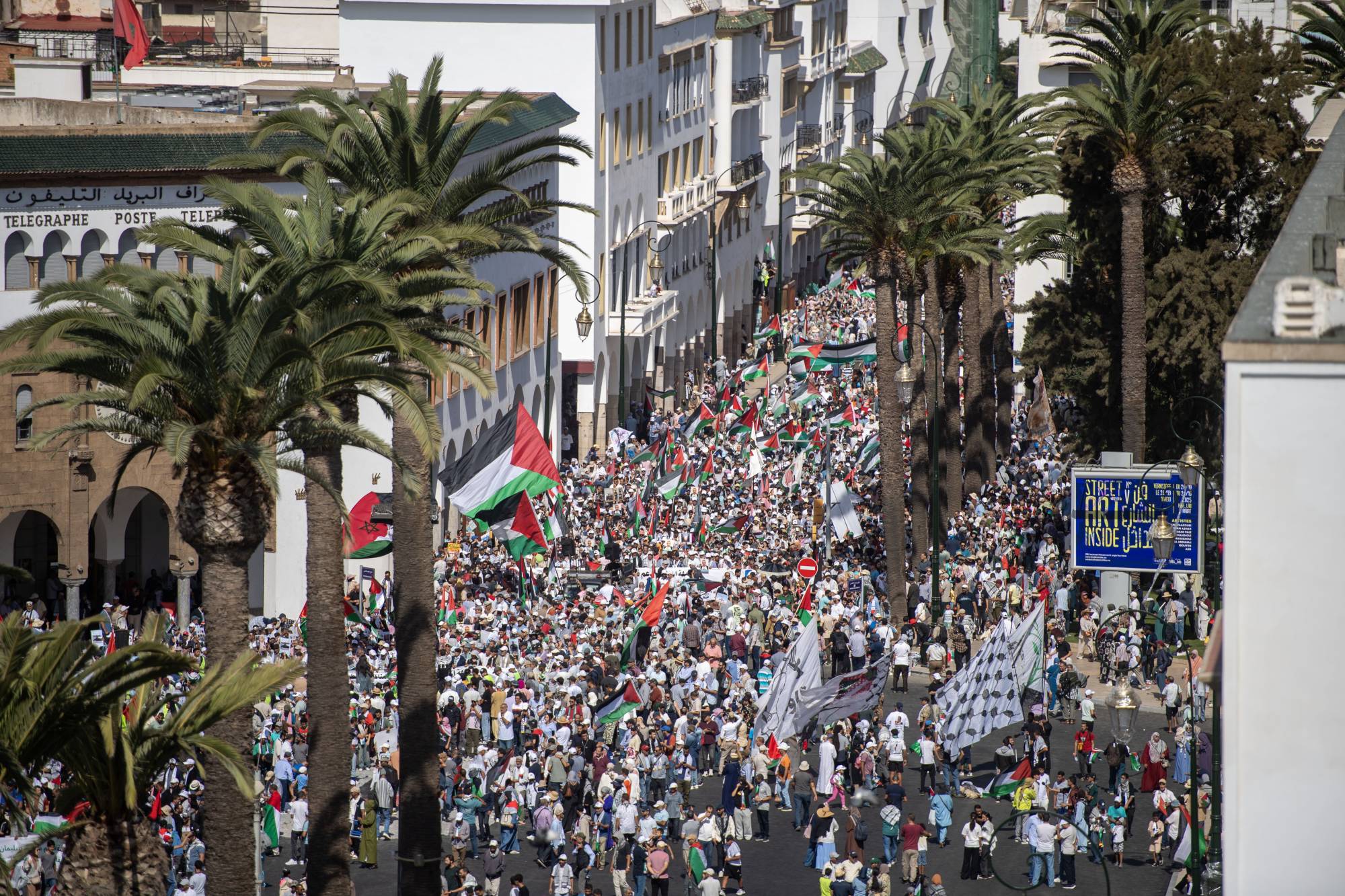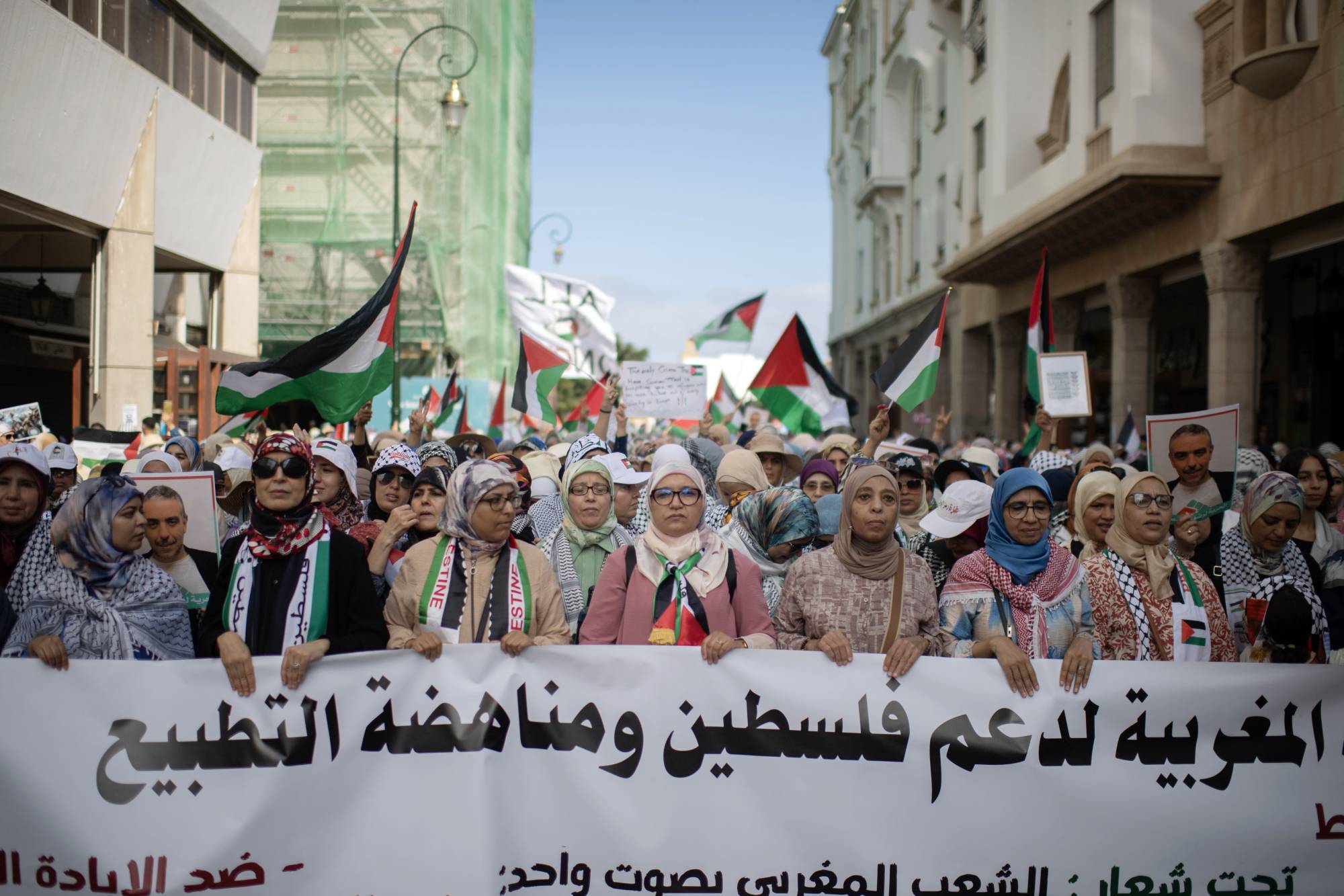 وعبَّر المتظاهرون أيضاً عن رفضهم تطبيع بلدهم علاقاته مع إسرائيل منذ عام 2020. وقالت فاطمة الزهراء المولى (27 عاماً): «نريد أن نُسمِع أصواتنا المعارِضة للتطبيع».