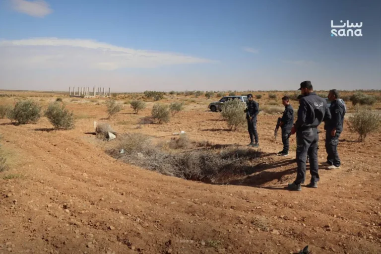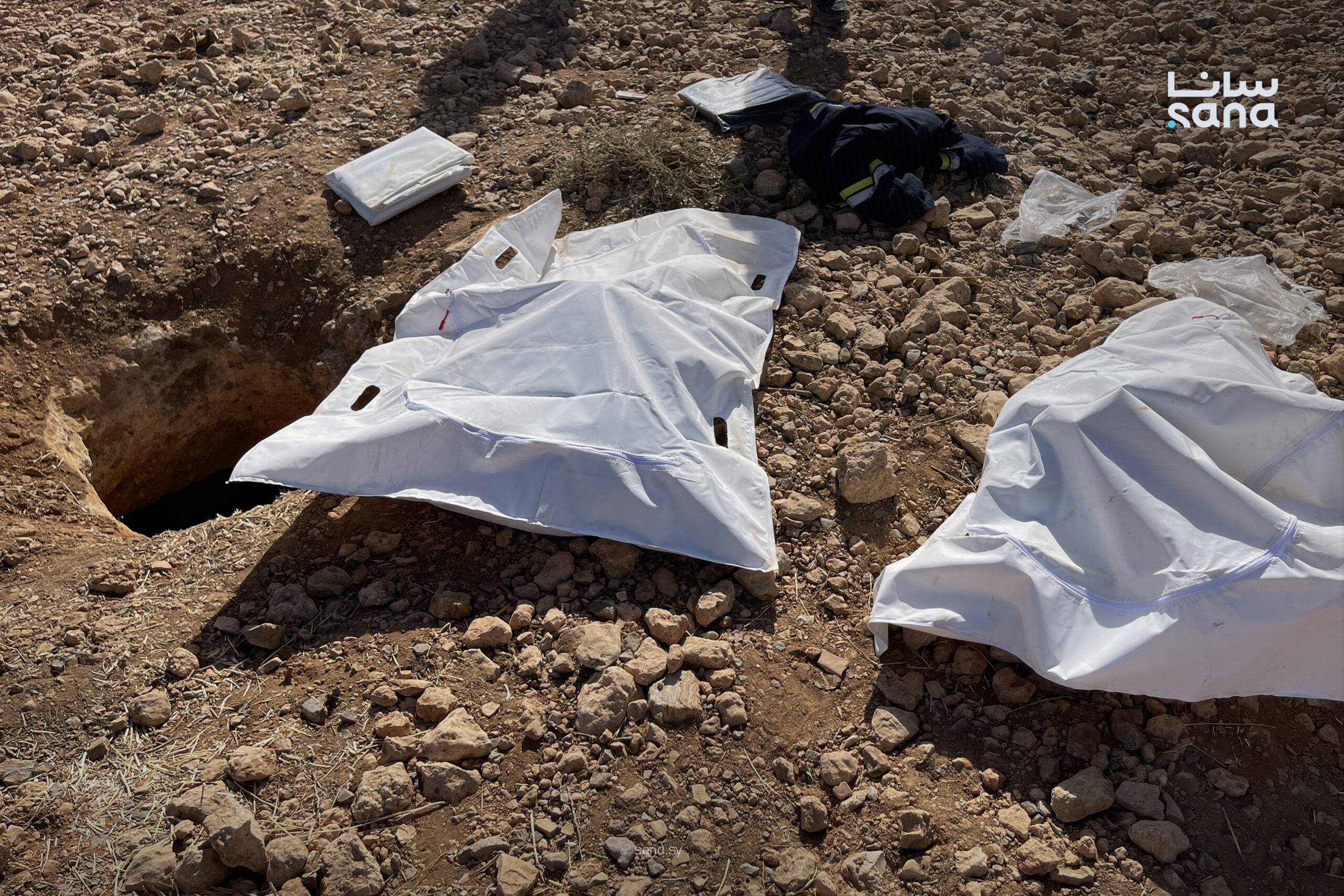 رفات نحو 16 شخصاً مجهولي الهوية اكتشفت في مقابر جماعية بقرية أبو حكفة الشمالي في ريف حمص الشمالي الشرقي 4 أكتوبر (سانا)