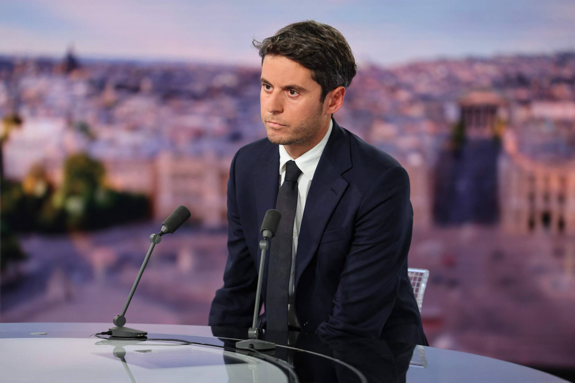 الأمين العام لحزب «النهضة» الفرنسي الوسطي غابرييل أتال (رئيس حكومة سابق) خلال مقابلة تلفزيونية خارج باريس 6 أكتوبر 2025 (أ.ف.ب)