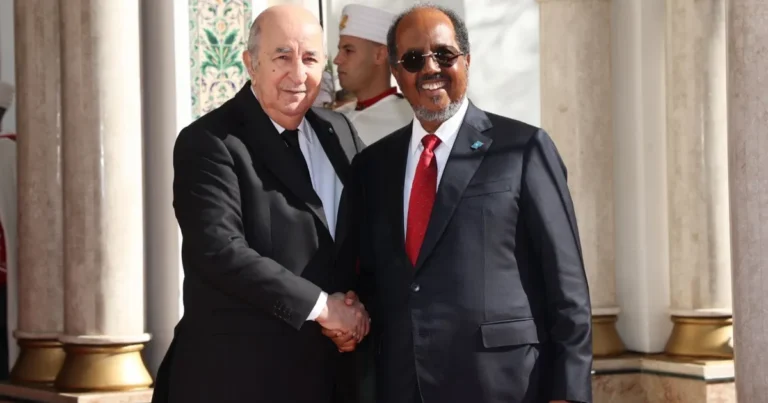 من جانبه، قال الرئيس الصومالي حسن شيخ محمود إن محادثاته مع الرئيس تبون “اتسمت بروح الأخوة والتفاهم المتبادل، وعكس العزم المشترك على تعزيز الروابط التاريخية بين الشعبين”.