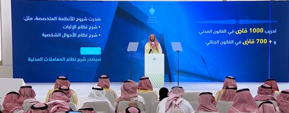 من جهته قال الدكتور وليد الصمعاني، وزير العدل السعودي، إن المملكة تمر بـ«تحوّل تشريعي كبير»، منوّهاً بأن المسيرة العدلية تحظى بدعم ومتابعة القيادة، ونتج عن هذا الدعم والمتابعة تطور في التشريعات والخدمات والإجراءات العدلية، وضعت العدالة في مسار أكثر وضوحاً وأعلى كفاءة وأقرب إلى المستفيد.