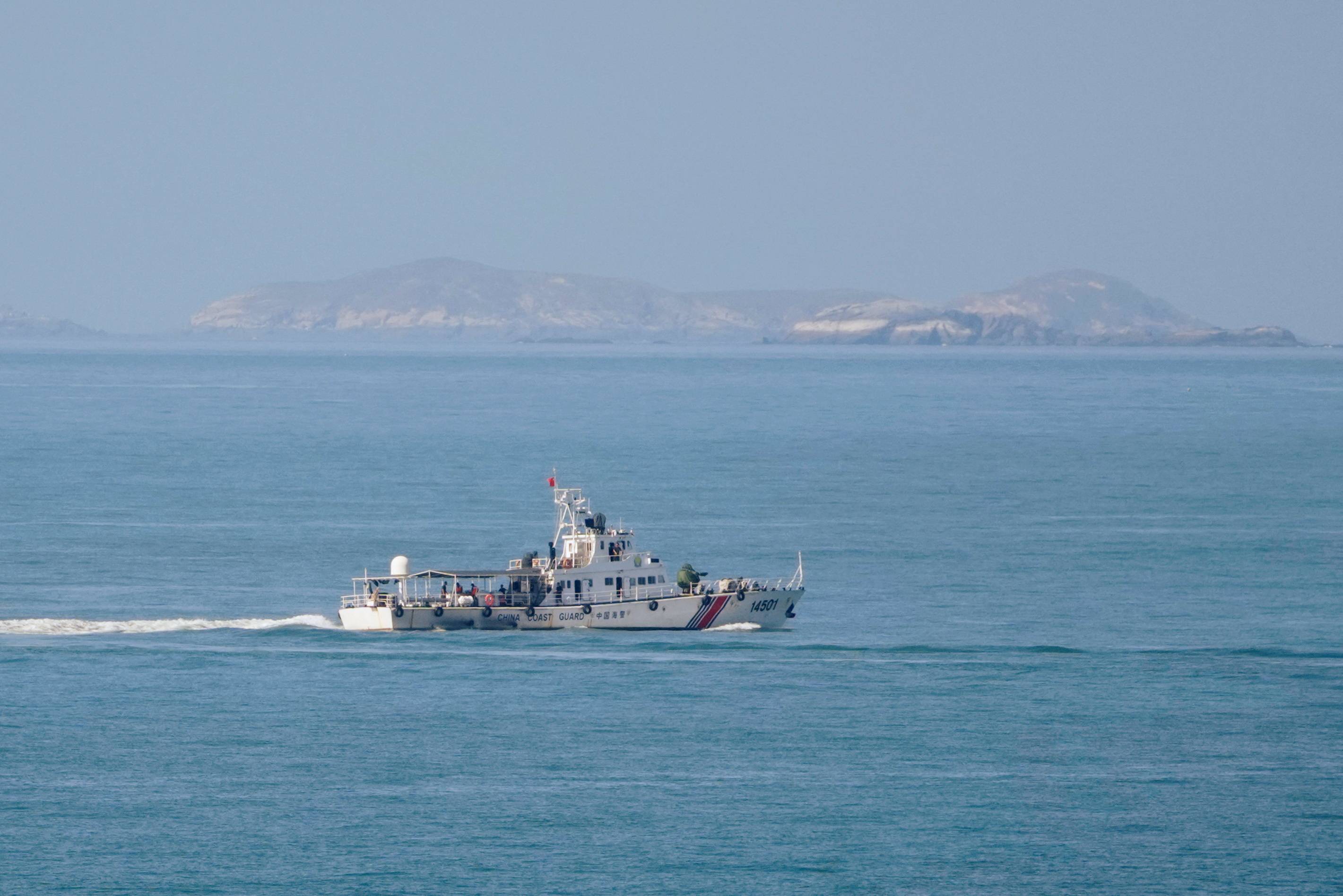 سفينة تابعة لخفر السواحل الصيني تبحر بنقطة قريبة من جزيرة تايوان في جزيرة بينغتان بمقاطعة فوجيان الصينية (أرشيفية – رويترز)