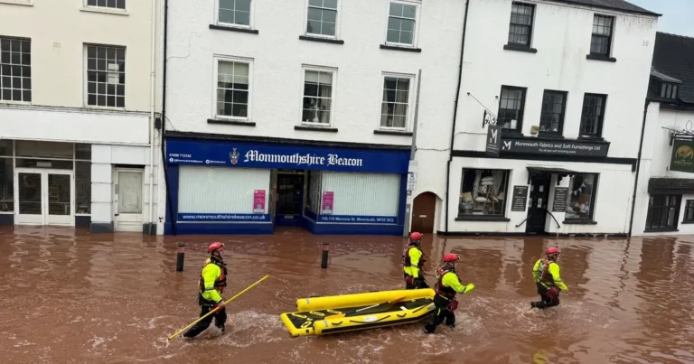 وفي بريطانيا، شهدت بلدة مونماوث والمناطق المجاورة في جنوب شرق ويلز السبت فيضانات عارمة.