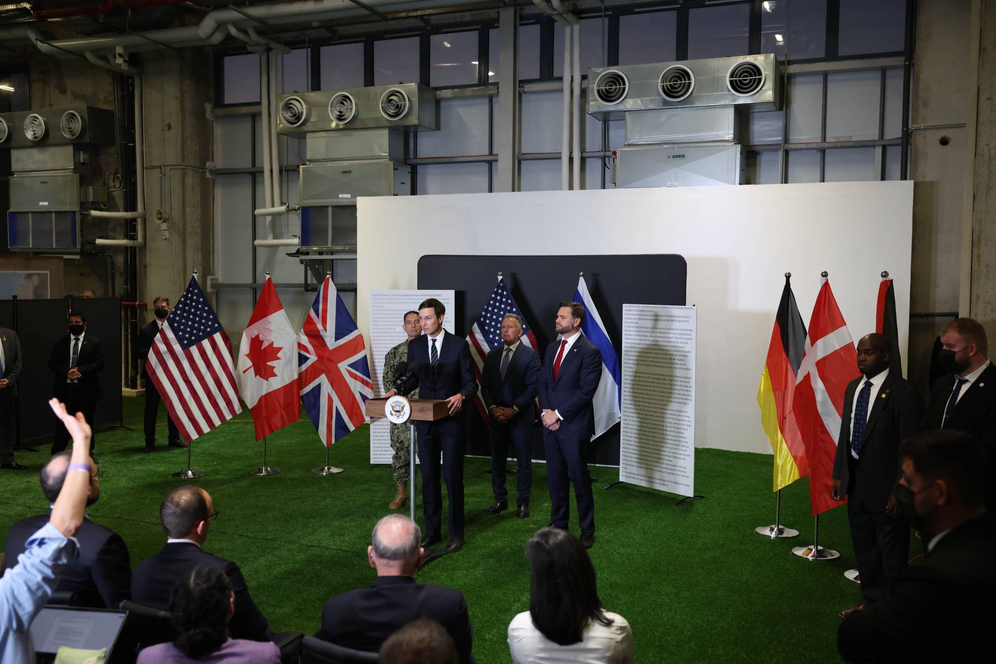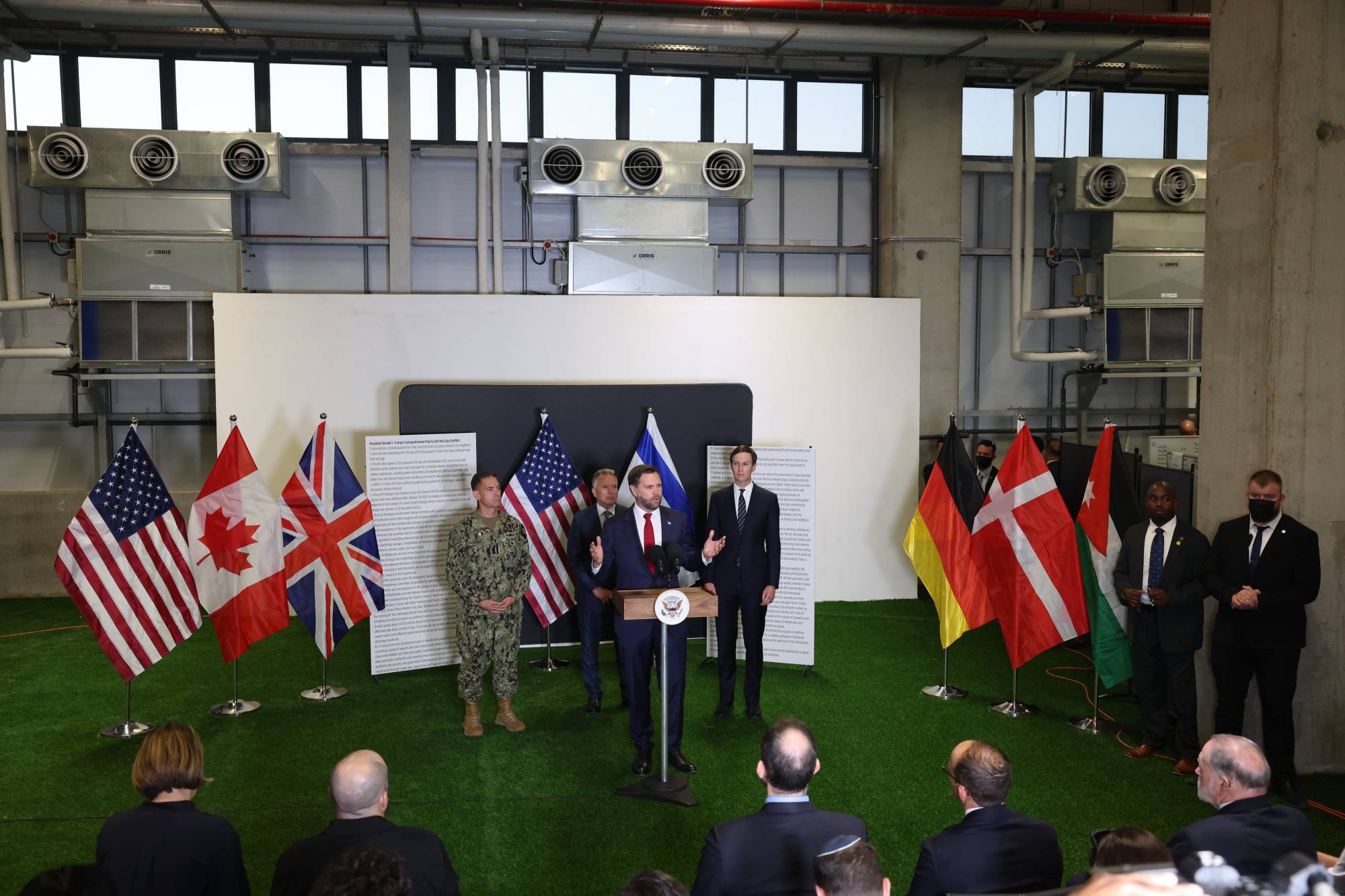 وأشار آيشنر إلى أنه وسط حظيرة الطائرات الكبيرة عُلِّقت لافِتَتان تُظهران خطة ترمب ذات العشرين نقطة. وأضاف: «يمكن التقدير أنه بفضل الحراسة اللصيقة للأميركيين، الذين يراقبون دقيقة بدقيقة (حرفياً) ما يحدث في قطاع غزة، لن يسمحوا لإسرائيل باستئناف إطلاق النار بهذه السرعة، حتى في ظل الانتهاكات المتواصلة لـ(حماس) التي لا تزال تحتجز 13 رهينة في القطاع».
