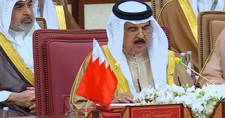 ولفت ملك البحرين إلى “السعي لمعالجة القضايا الإقليمية بما يخدم الاستقرار في المنطقة”، مضيفاً أن “دول مجلس التعاون تمكنت من صياغة نموذج تنمية متكامل يواكب تطلعات شعوبها”.