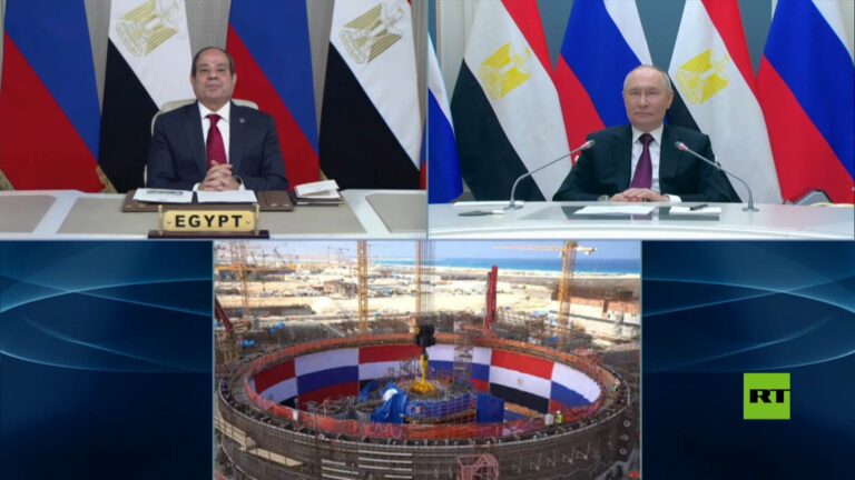 أنت الآن تتصفح:Home » بوتين والسيسي يشاركان عبر الفيديو في مراسم تركيب وعاء المفاعل النووي المصري في محطة الضبعة