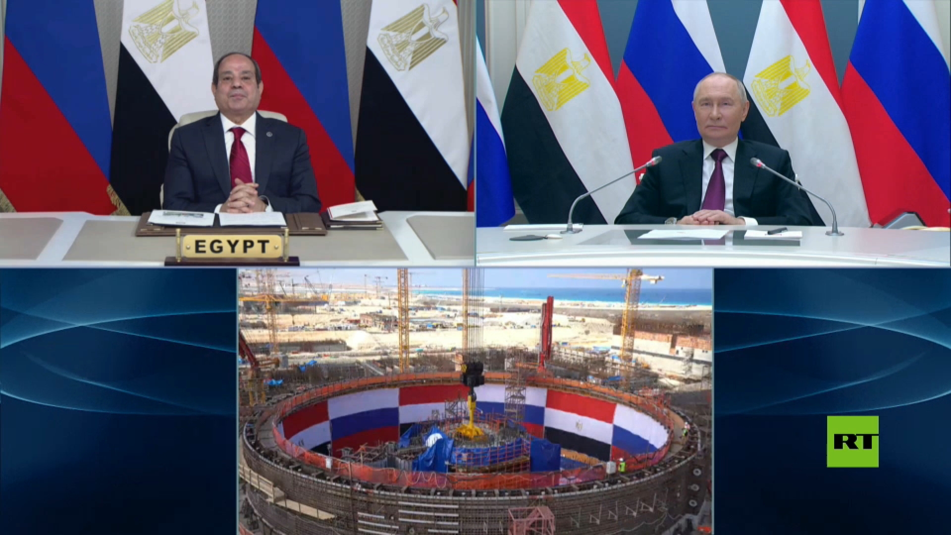 بوتين والسيسي يشاركان عبر الفيديو في مراسم تركيب وعاء المفاعل النووي المصري في محطة الضبعة