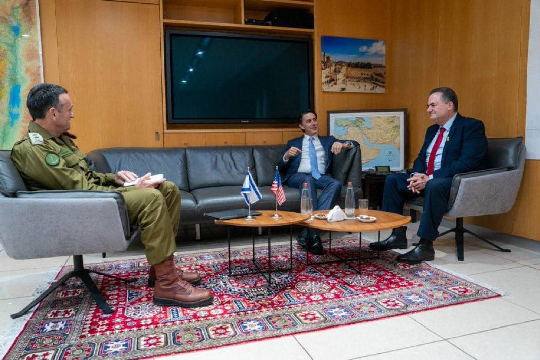 هوكستين خلال اجتماعه مع وزير الدفاع الإسرائيلي يسرائيل كاتس ورئيس أركان الجيش هرتسي هاليفي قبل إعلان وقف النار بين لبنان وإسرائيل في نوفمبر 2024 (وزارة الدفاع)