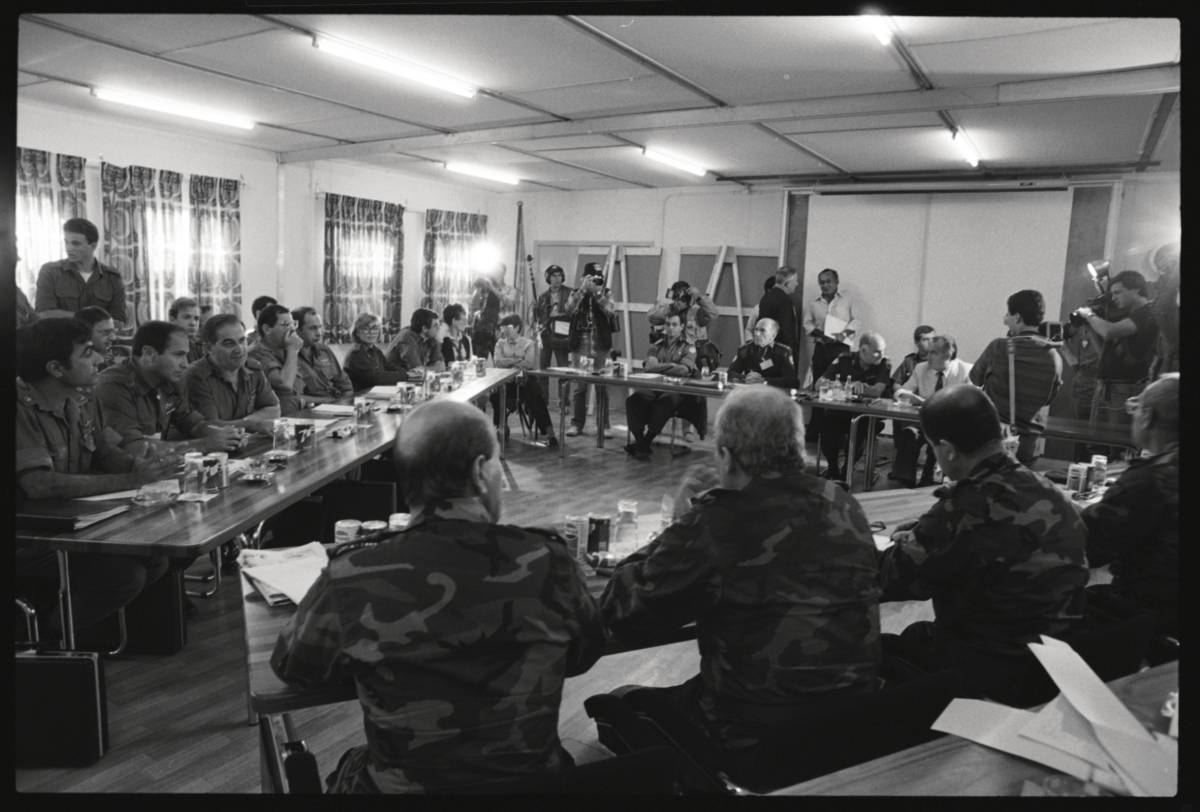 جانب من المفاوضات بين الوفدين اللبناني والإسرائيلي بوساطة أميركية في عام 1983 تمهيداً لتوقيع اتفاق 17 مايو (أرشيفية – غيتي)