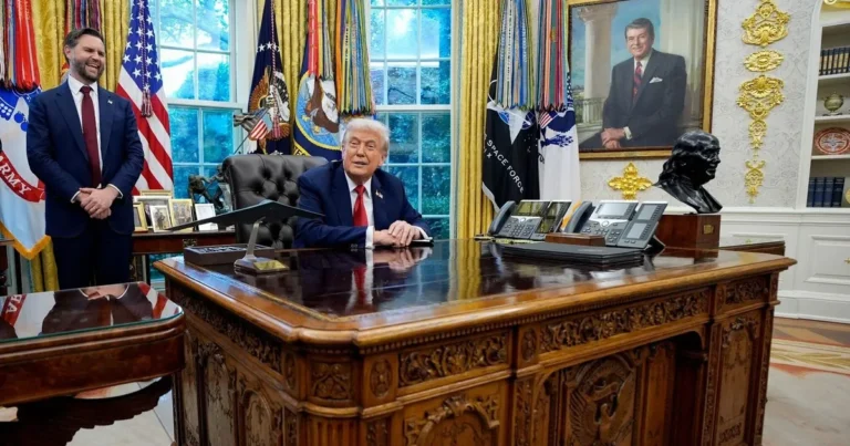قال الرئيس الأميركي دونالد ترمب، الخميس، إنه أجرى “حواراً جيداً” مع رئيس الوزراء الإسرائيلي بنيامين نتنياهو بشأن صفقة وقف إطلاق النار في غزة وتبادل الأسرى والمحتجزين، مرجحاً “الإعلان عن صفقة قريباً”، فيما شدد على أنه “لن يسمح لإسرائيل بضم الضفة الغربية”، وأبدى رفضاً قاطعاً للفكرة، قائلاً: “حان الوقت لوقف ذلك”.