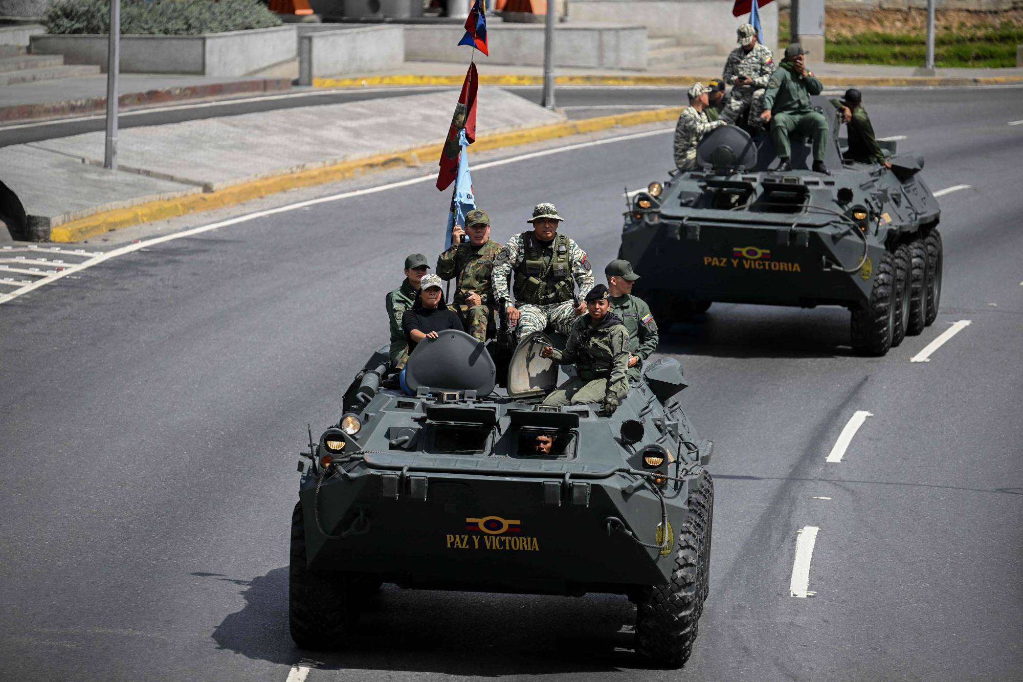 دبابات الجيش الفنزويلي تظهر أثناء انتشار عسكري لدعم الرئيس نيكولاس مادورو في كراكاس (أ.ف.ب)