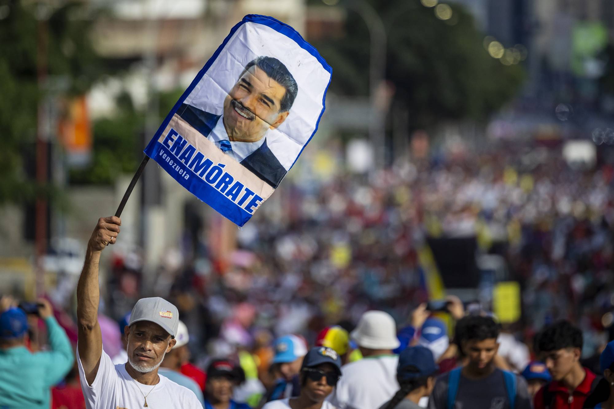 مؤيدون لحكومة مادورو خلال مسيرة في كاراكاس يوم 6 أكتوبر الحالي (إ.ب.أ)