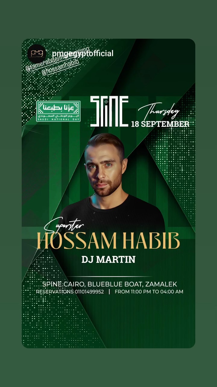نشر الفنان حسام حبيب عبر خاصية القصص المصوّرة الملحقة بحسابه الخاص في “إنستغرام” بوستر الاحتفال باليوم الوطني للمملكة العربية السعودية، مشوّقاً الجمهور لمشاركته في الحفل، الذي ستقيمه السفارة السعودية في القاهرة اليوم (الخميس) على متن أحد المراكب النيلية في القاهرة.