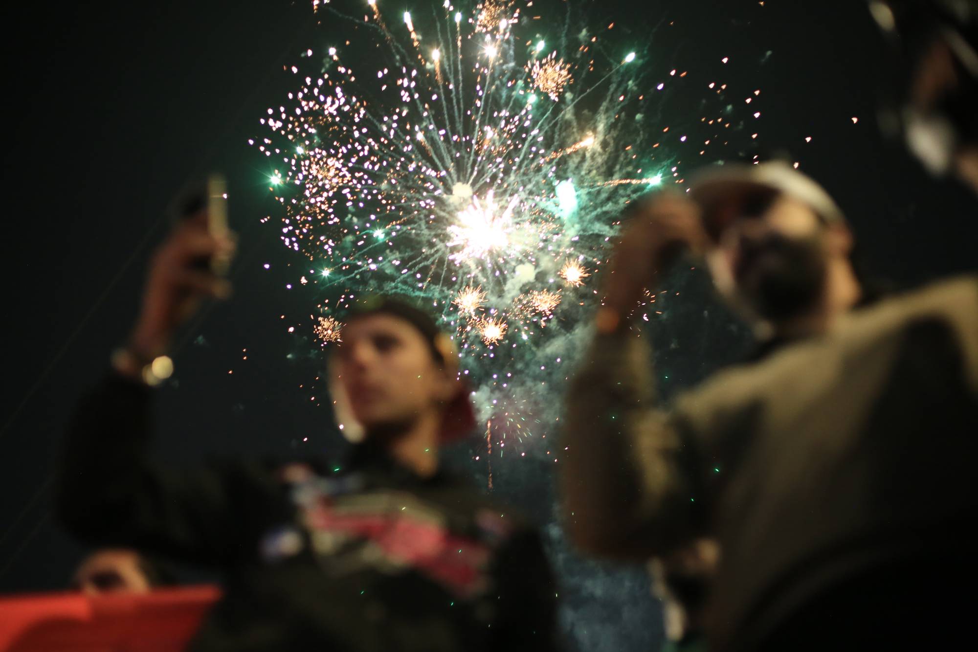 مؤيدون لرئيس الحكومة العراقية محمد شياع السوداني يحتفلون وسط بغداد (د.ب.أ)