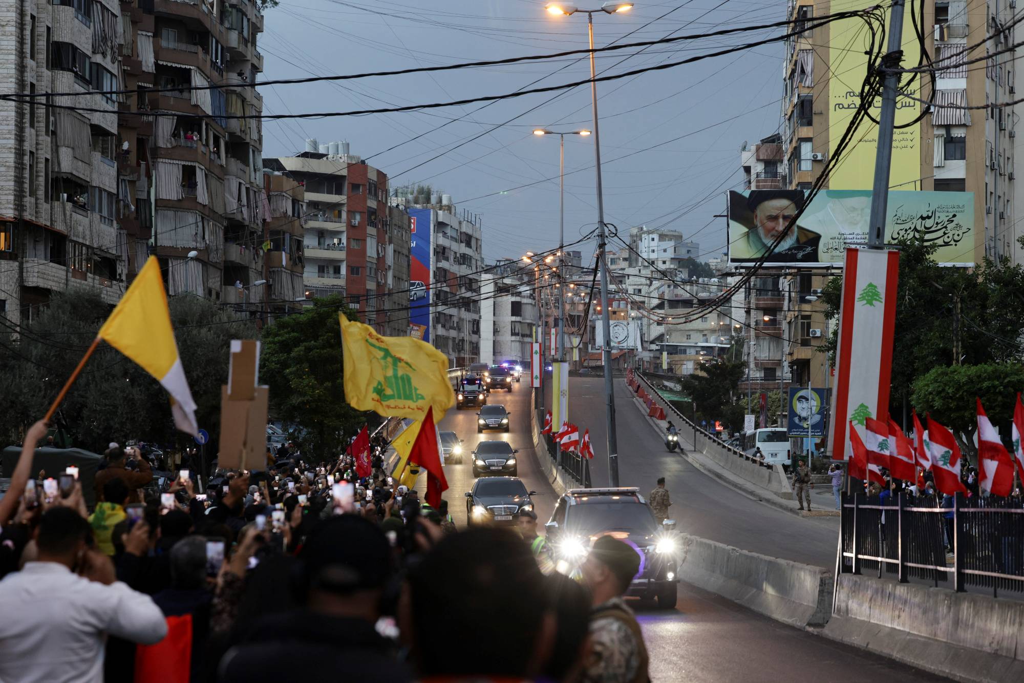 موكب البابا ليو الرابع عشر يخترق جسر الرويس في الضاحية الجنوبية لبيروت أثناء عبوره إلى القصر الرئاسي وسط حشود من مناصري «حزب الله» (رويترز)