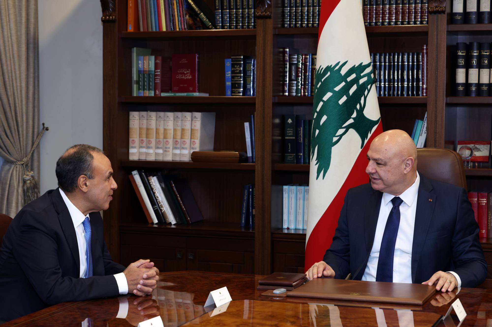 الرئيس اللبناني جوزيف عون مجتمعاً مع وزير الخارجية المصري بدر عبد العاطي (إ.ب.أ)