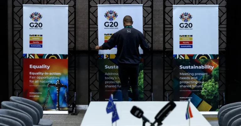 اتفق مبعوثو مجموعة العشرين على مسودة إعلان القادة، قبل قمة مقررة يومي السبت والأحد في جوهانسبرج دون إسهام الولايات المتحدة، حسبما نقلت وكالة “رويترز” عن أربعة مصادر مطلعة.