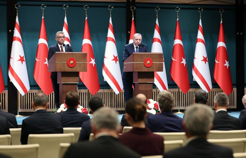 وقال إردوغان، في مؤتمر صحافي مع الرئيس الجديد لما تُسمى «جمهورية شمال قبرص التركية»، التي لا تعترف بها سوى أنقرة، طوفان إرهورمان، الخميس: «إن تركيا تعتقد أن أكثر الطرق واقعية لحل مشكلة قبرص هي وجود دولتين، ولا جدوى من إجراء مفاوضات لن تفضي إلى أي نتائج».
