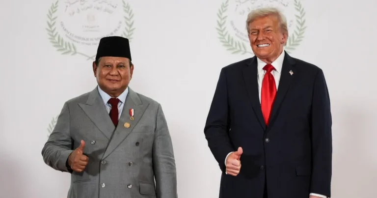 والتقط مايكروفون مفتوح، حديث برابوو سوبيانتو مع ترمب بعد أن ألقى الرئيس الأميركي كلمته في قمة شرم الشيخ بشأن اتفاق وقف النار في غزة.