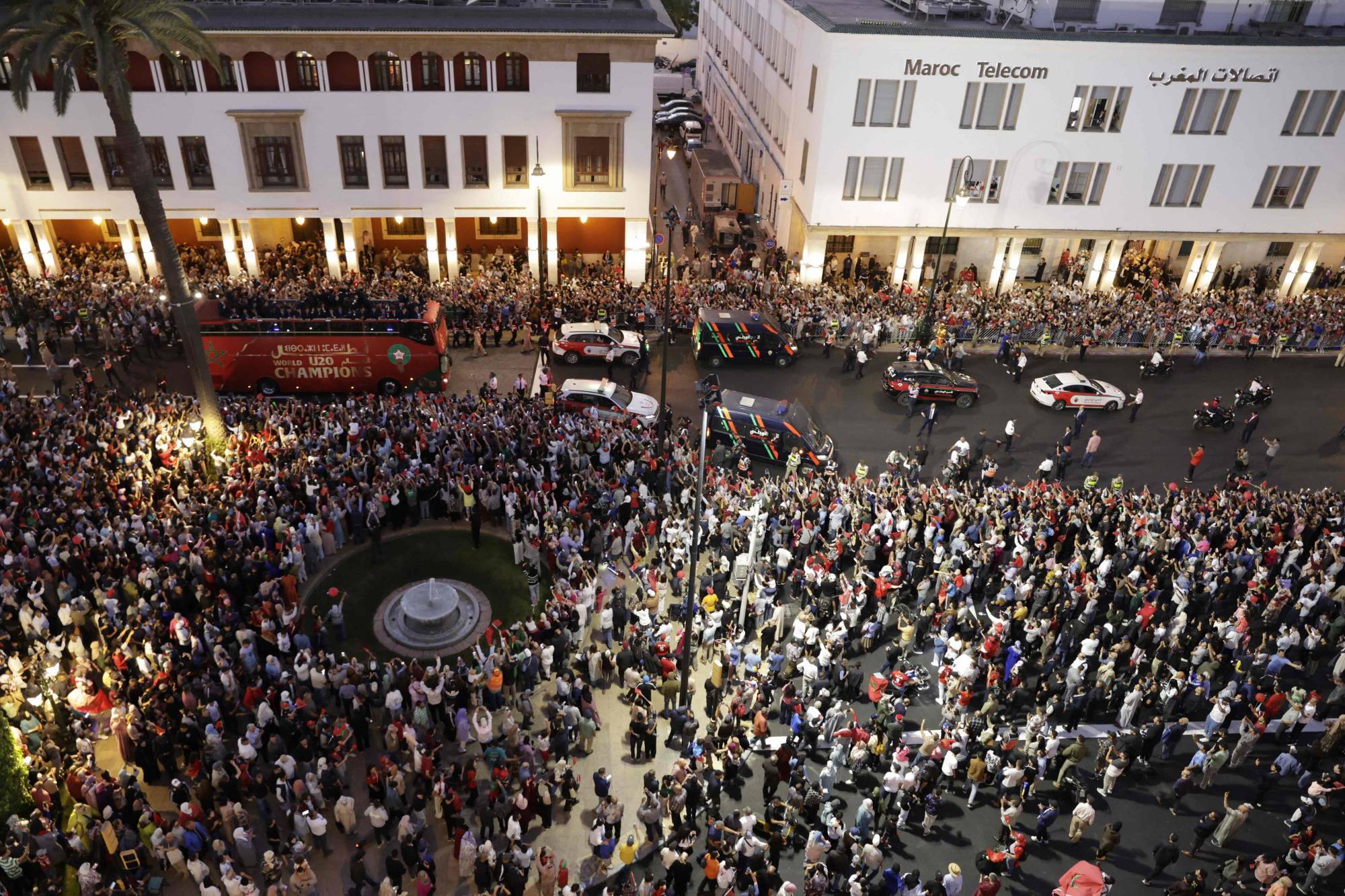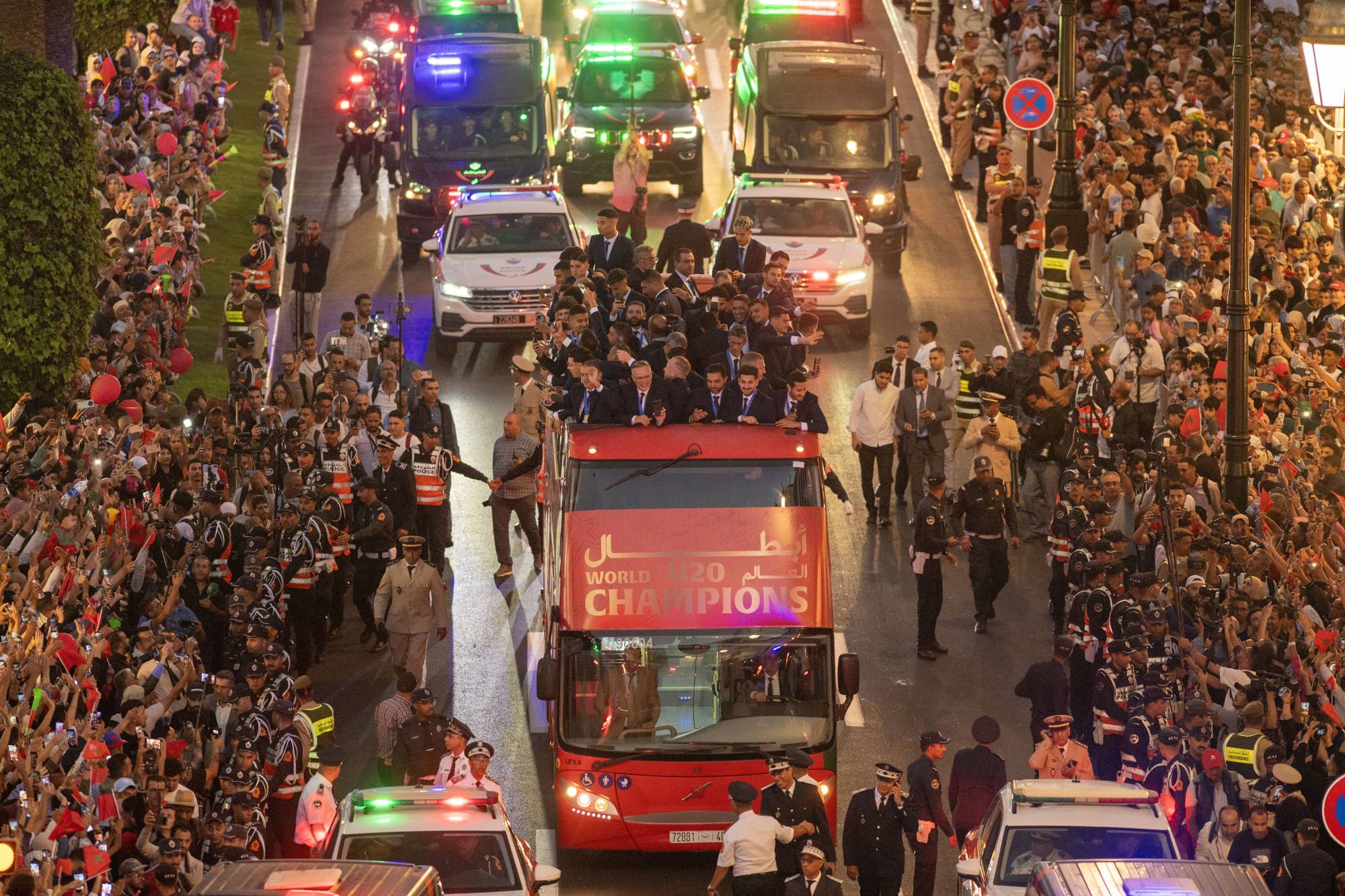 وفي مساء الأربعاء، انطلقت حافلة مكشوفة تقلّ عناصر المنتخب المغربي في جولة احتفالية عبر شوارع الرباط، مرّت بشارع النصر وشارع محمد الخامس، وسط موجات بشرية غفيرة اصطفّت على الجانبين لتحية الأبطال.