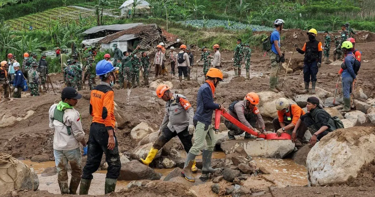 ووقع الانهيار الأرضي في قرية باسير لانجو بمنطقة باندونج بارات في وقت مبكر من صباح السبت، ونجم عن أمطار غزيرة بدأت الهطول الجمعة.