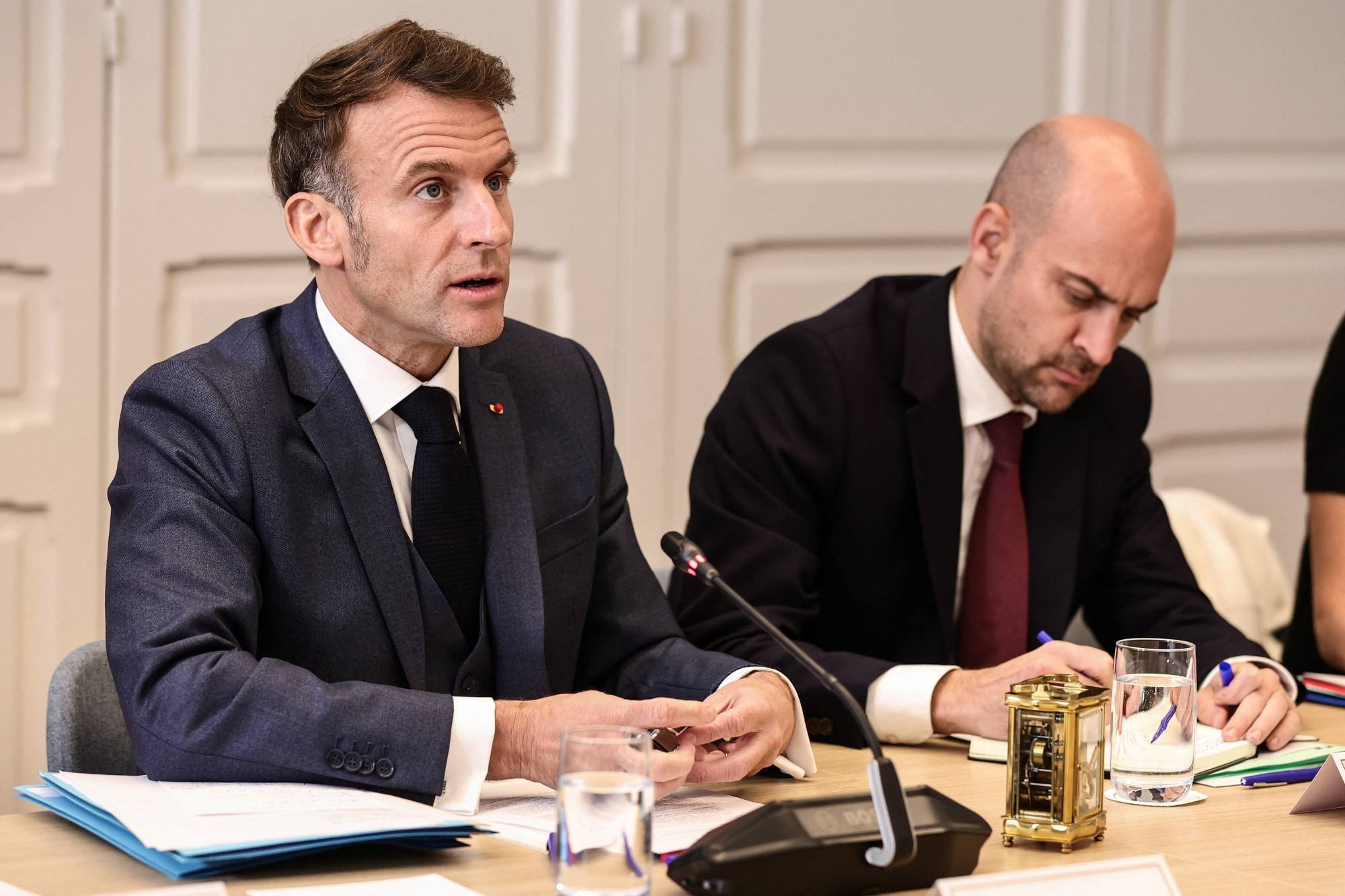 وزير الخارجية الفرنسي جان نويل بارو (يمين) إلى جانب الرئيس إيمانويل ماكرون بمناسبة اجتماع «تحالف الراغبين» من بُعد مساء 25 نوفمبر (رويترز)