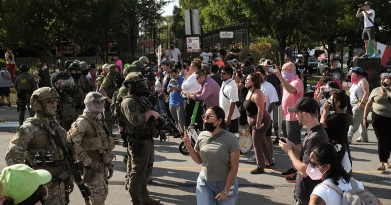 وتصاعد التوتر بعد حادثة وقعت السبت، قرب منشأة احتجاز مهاجرين في برودفيو، إذ قالت متحدثة باسم وزارة الأمن الداخلي إن ضباطاً فيدراليين “أطلقوا نيراناً تحذيرية دفاعية”، على امرأة، قبل أن تنقل نفسها إلى المستشفى.