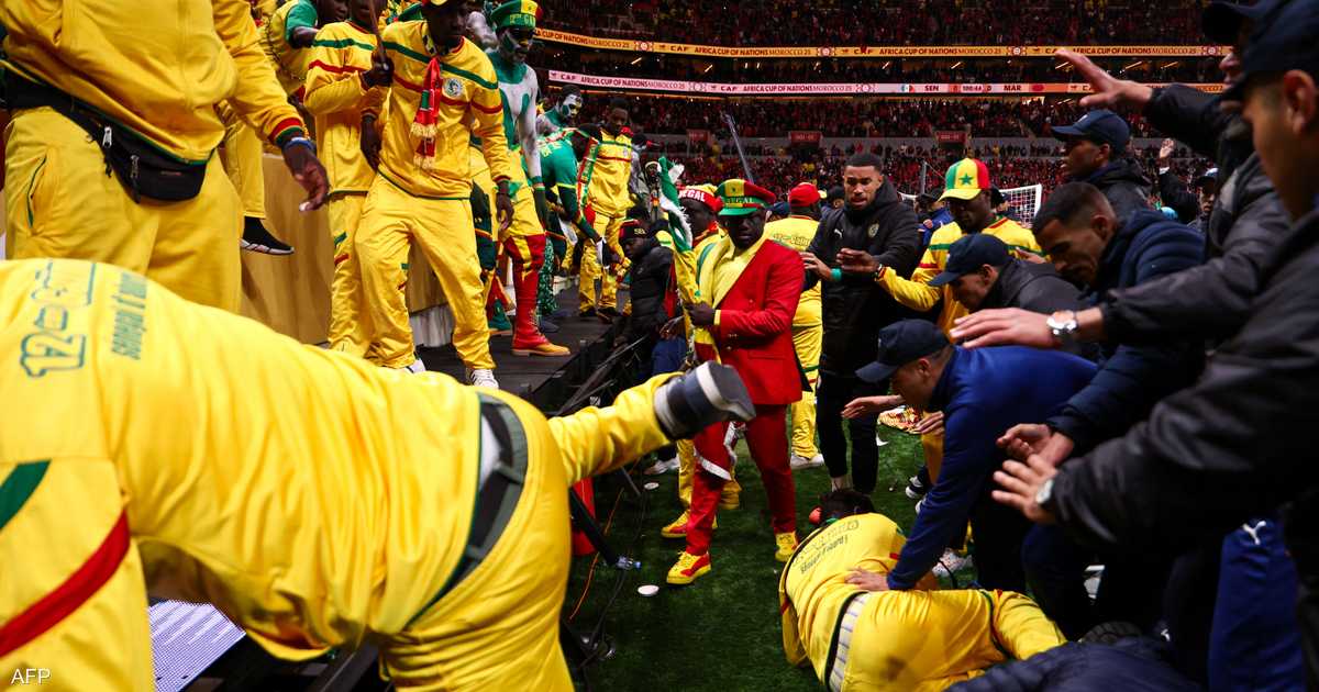 وشهدت المباراة، التي أقيمت مساء الأحد، لحظات توتر شديدة عندما احتسب الحكم جان جاك مدالا ركلة جزاء متأخرة لصالح المنتخب المغربي، في وقت كان التعادل السلبي (0-0) لا يزال قائما، ما دفع غالبية لاعبي المنتخب السنغالي إلى مغادرة أرض الملعب احتجاجا على القرار.