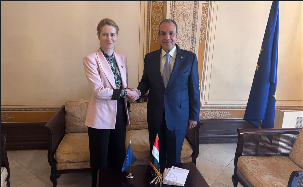 وزير الخارجية المصري في أثناء لقائه الممثلة العليا للشؤون الخارجية والسياسة الأمنية للاتحاد الأوروبي كايا كالاس (الخارجية المصرية)